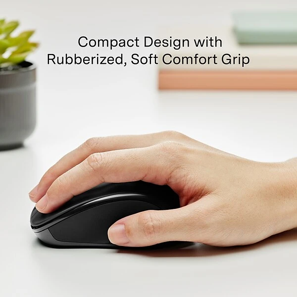 - Compact optical mouse allows for portability and is easy to store for use on the go, at home or office