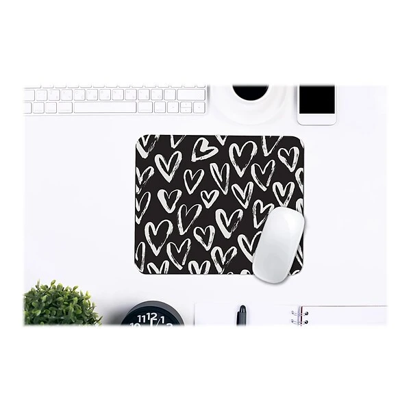 Dress up your workspace with this stylish OTM Essentials Prints Series White Hearts mouse pad. Made with a nonslip base, this mouse pad stays in place without moving around your desk. Like all OTM Essentials products, the pad is made with quality materials.