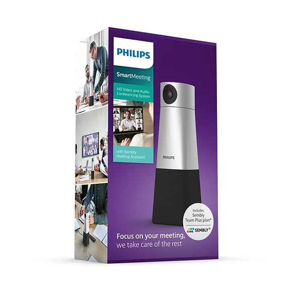 The Philips SmartMeeting HD Audio and Video Conferencing Solution with Sembly Meeting Assistant take part in meetings with you as your dedicated note takers. With 4K high-definition video, enhanced pan/tilt and zoom and automatic voice tracking, Philips SmartMeeting Conferencing Solution captures every person in the room with phenomenal video and audio quality. Sembly creates automatic transcripts, summaries and highlights action points and to-dos for you. The solution helps you find out who said what easily and quickly after every meeting, even if you could not attend.