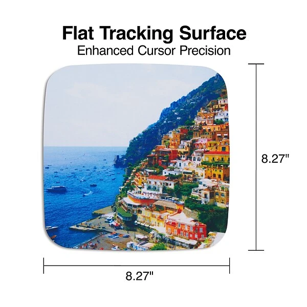 The Italy landscape optical mouse pad measures 8.75″ x 7.78″ and offers a stylish appearance to your home or office computer. The non-slip rubber backing stabilizes the pad to maintain the ideal positioning.