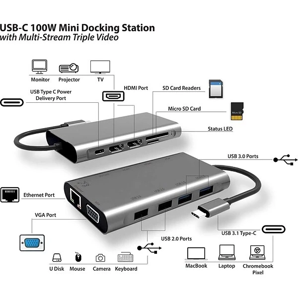 - Home Office Connectivity – The USB-C Mini Docking Station is your home office connectivity solution, enabling viewing on multiple monitors, connecting to external drives and printers, joining local area networks, charging mobile devices and more.