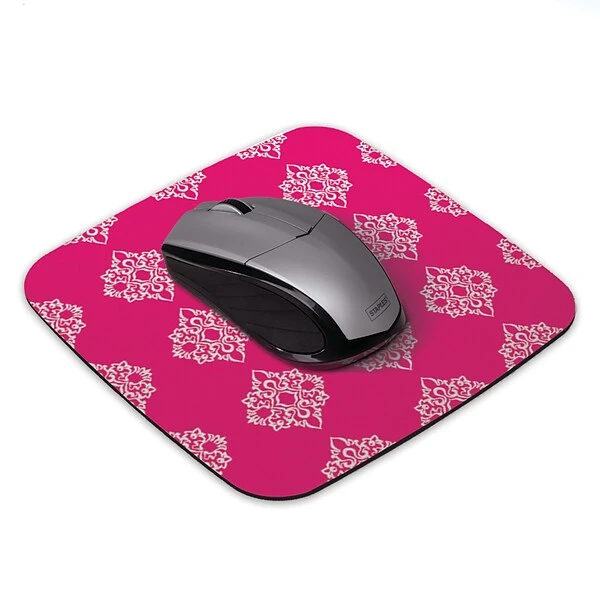Personalize your desk with this Staples Turkish mouse pad. The repeating pattern and soft color scheme add a appealing look to your office or cubicle, while the smooth surface offers accurate mouse tracking. A non-skid bottom keeps this mouse pad securely in place as you scroll, point and click. With its compact size and rounded corners, this Staples Turkish mouse pad fits on small work surfaces.
