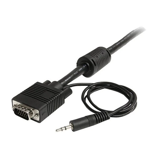 StarTech.com® 15′ Black VGA Co-axial cable links high-resolution VGA monitor and external audio device to video/audio source. Supports 1920 x 1200 resolution video signal.