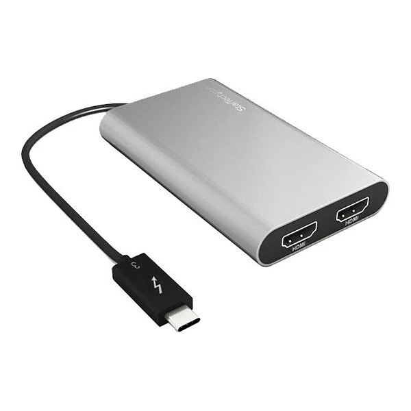 The StarTech.com® silver/black Thunderbolt 3 to dual HDMI adapter connects two displays through a single Thunderbolt 3 USB-C port by keeping other ports free. It lets you run resource demanding applications on 4K displays at 30 Hz. This adapter is backward compatible with high-definition 1920 x 1200 and 1080p resolutions. It is perfect for creative professionals working with high-resolution, graphics-intensive images and video. This adapter allows you to edit high-definition photos or videos across two additional displays in any orientation or resolution. It connects your Dell XPS or Dell Precision to two external HDMI displays.