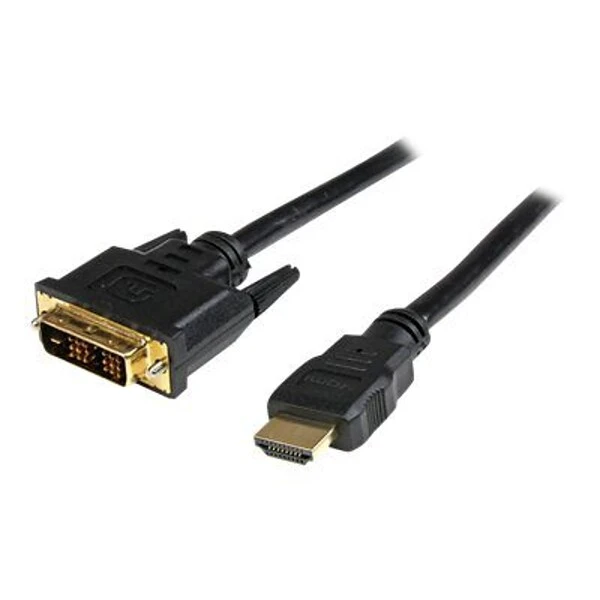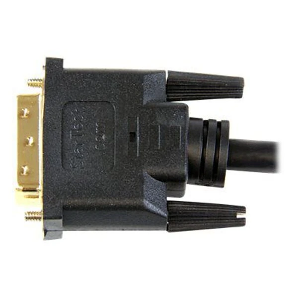 Enjoy a seamless viewing experience on your HDTV from HDMI-enabled digital multimedia sources by using the StarTech HDMI Video Cable. A 19-pin male HDMI at one end and 19-pin male DVI-D at the other enable you to transfer a clean signal from your video source. Gold-plated connectors of this video cable are corrosion-resistant and ensure smooth signal transfer. With a PVC shielding around the copper wire, the cable is as durable as it is functional. With a length of 3 feet, this video cable enables you to conveniently position and set up your home entertainment system just the way you want.