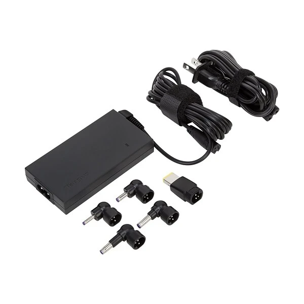 - Universal laptop adapter with surge protection and an interchangeable tip system