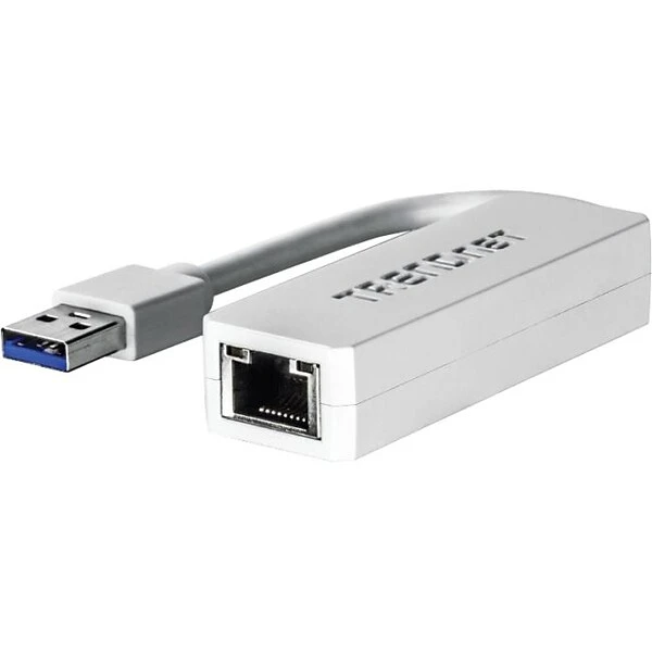 The TRENDnet USB 3.0 to RJ-45 Gigabit Ethernet Adapter allows users to connect a computer to high speed Ethernet networks easily.