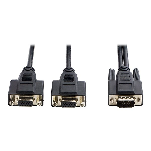 - Connections: One VGA male connector on first end, two VGA female connector on second end