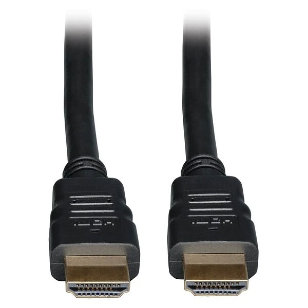 The Tripp Lite 10′ black high-speed HDMI cable with Ethernet v1.4 offers pure digital video and audio connections between HDMI-enabled HDTV display devices and HDMI-enabled digital video sources. This cable offers UHD 4K x 2K high clarity video resolutions up to 3840 x 2160. It transmits data at the rate of 10.2 Gb/s to offer 1080p resolution pictures. This cable comes with in-wall, CL2-rated jacket for long lasting durability. The gold-plated connectors ensure optimal signal conductivity. This cable has one HDMI male connector on both the ends. It is backward compatible to previous HDMI generations cable.