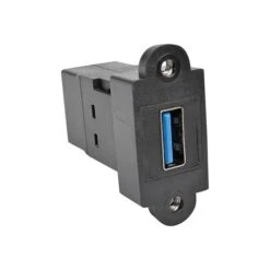- Black USB keystone/panel mount coupler is used for securing podium or kiosk