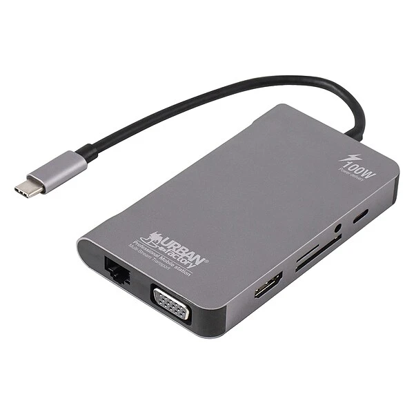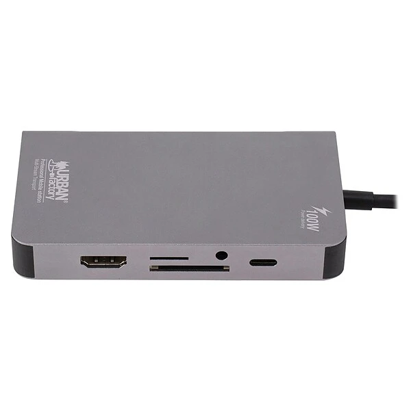 The HUBEE Plus USB-C Mobile Station from Urban Factory allows you to connect your peripheral devices wherever and whenever because of its compact size and ease of use. The station has all the essential ports you’ll need: 3 USB 3.0 ports to connect your mouse, keyboard, and hard drive and 2 video ports to connect to your external screen. Whether your monitor is in VGA 1080p or 4K HDMI, the HUBEE handles the 2 types of connection. To finish, you can connect your computer to the network through the 1,000 Mbps RJ45 port. And if your computer is USB-C powered, you can directly connect your external power supply to the station to recharge your computer, up to 100 watts!