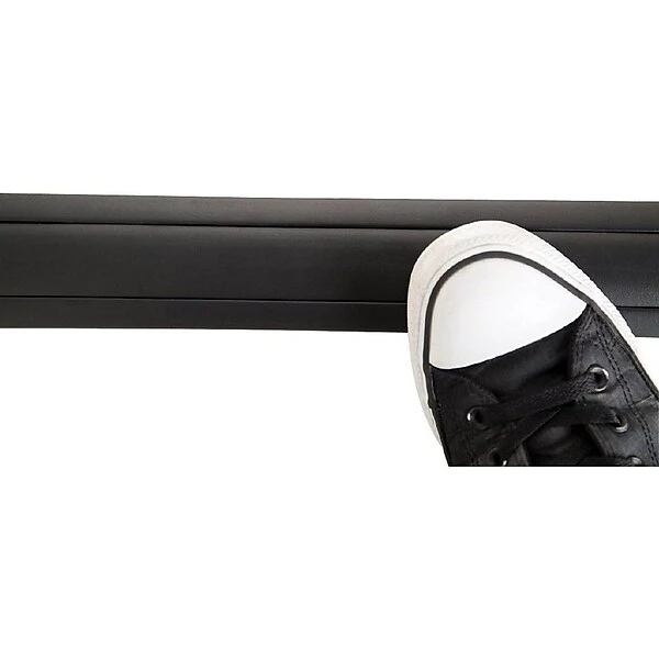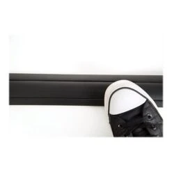 - The flexible material with a black finish easily applies and lays flat on any floor surface
