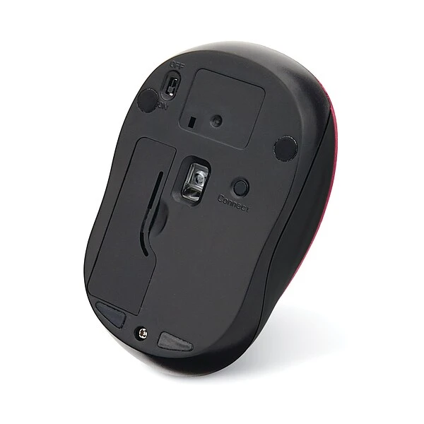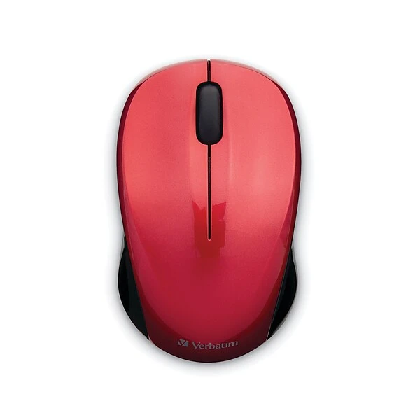 Say goodbye to noise and hello to silence with the red Verbatim Silent Mouse. Using new Silent Technology, silent click switches and rubber covers, this Verbatim mouse is truly silent. The 2.4 GHz wireless performance allows for lag-free cursor movement while the comfort-grip shape provides ease of use. Blue LED technology allows users to point and click on more surfaces than other mice—from a glass table to the granite kitchen counter! The mouse connects to the computer via a nano receiver, small enough to plug in and leave connected—great for computing on the go. Turn your noisy office into a place of tranquility—and enjoy the sound of silence.