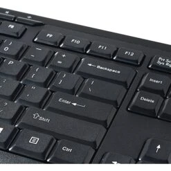 The Verbatim Silent Wireless Mouse and Keyboard comes with a nano receiver that is small enough to plug in and leave connected and the 2.4GHz wireless performance allows for a lag-free connection. The Silent Mouse features Blue LED technology, allowing users to point and click on more surfaces than other mice – from a glass table to the granite kitchen counter! The Silent Keyboard features a full numeric keypad and full-size function keys, all within a slim, efficient design.